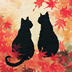 秋色に染まる木々の下で、猫たちがそっと寄り添う。