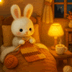 フェルトアートで作られたうさぎとあたたかな秋の夜。