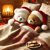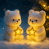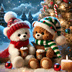 クリスマスの温かな灯りに包まれるテディベアたち。