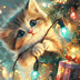 キラキラ輝くクリスマスツリーに夢中な無邪気な子猫☆