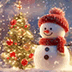 雪だるまとツリーが静かにきらめく幻想的なスノードーム。
