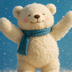 あたたかいマフラーを巻いて、雪の中でもにこにこくまさん。