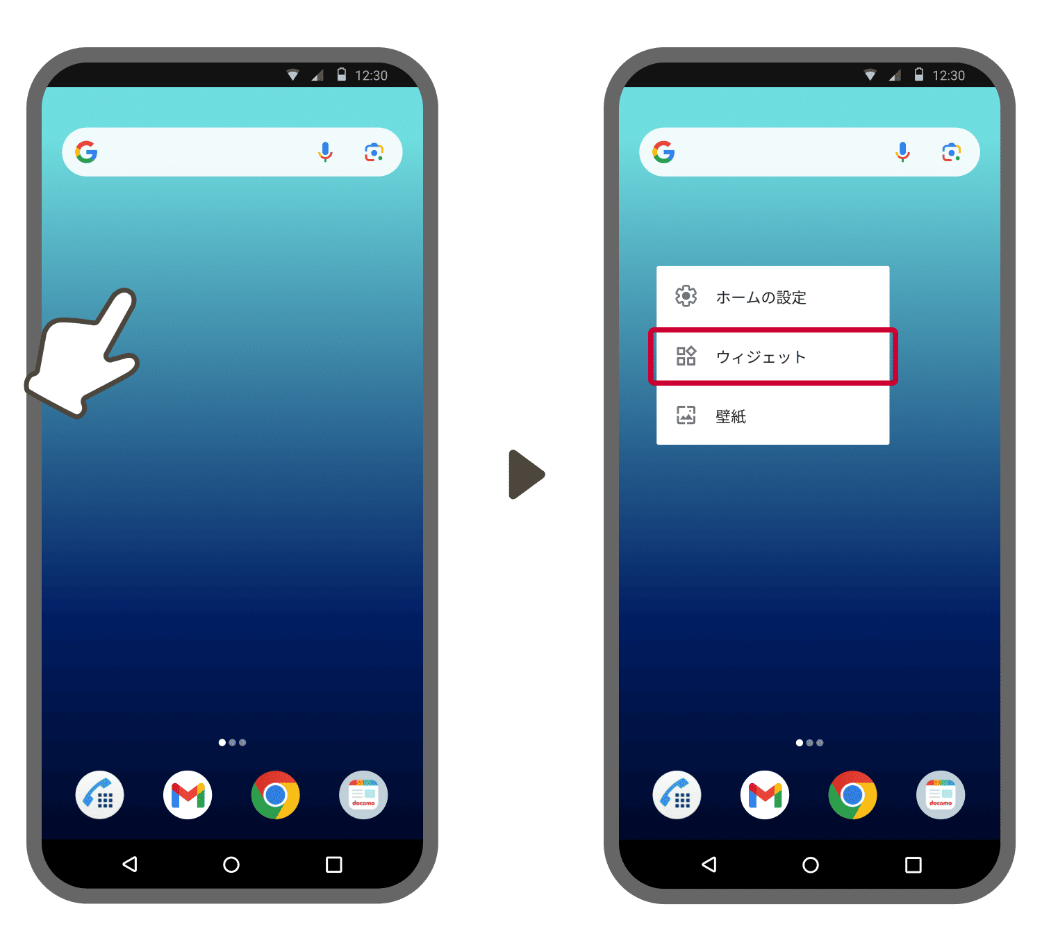 1.ホーム画面でウィジェットまたは何も表示されていない部分を長押しして、リストからウィジェットをタップ