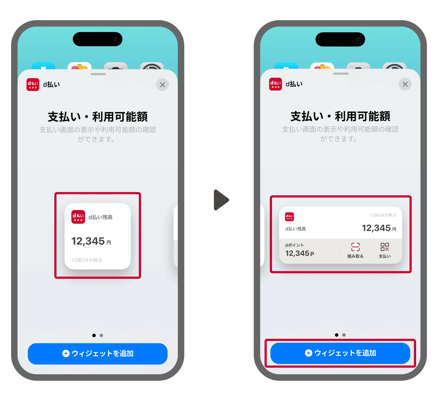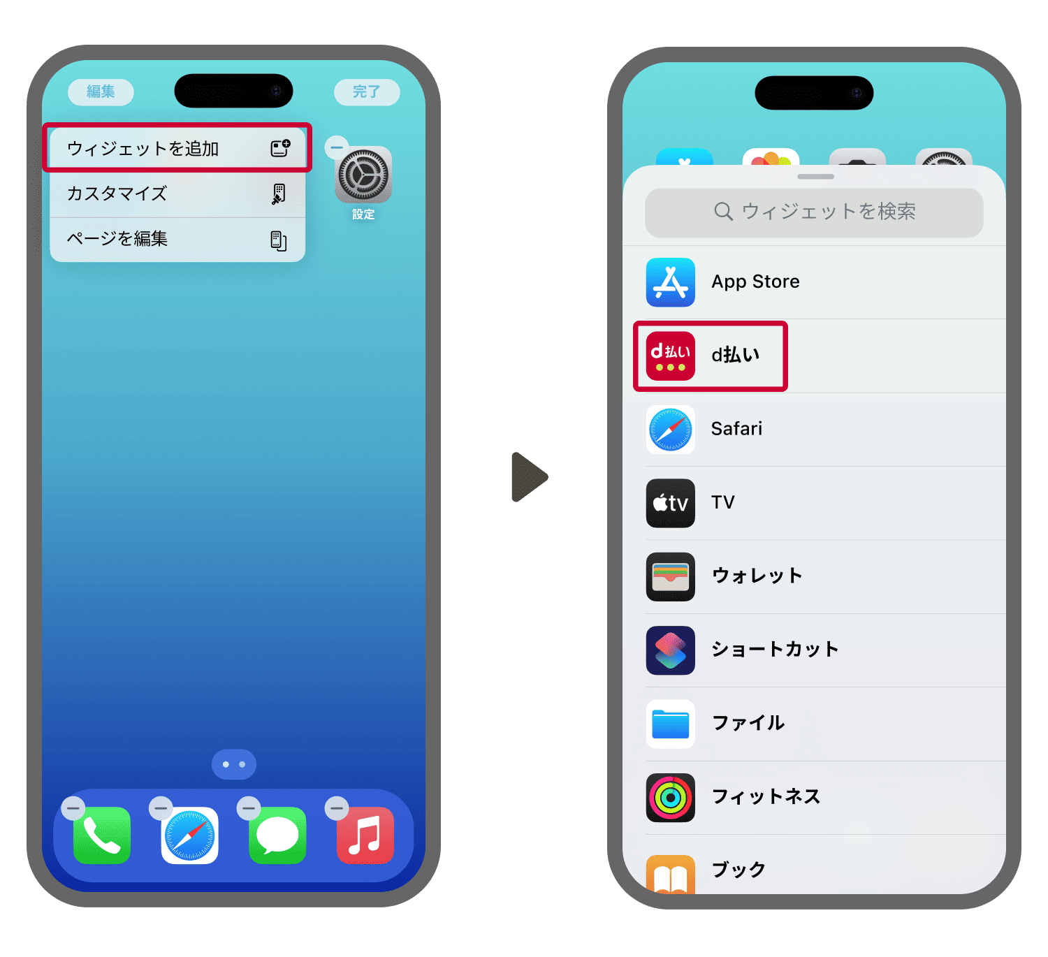 2.「ウィジェットを追加」をタップし、「d払い」を選択