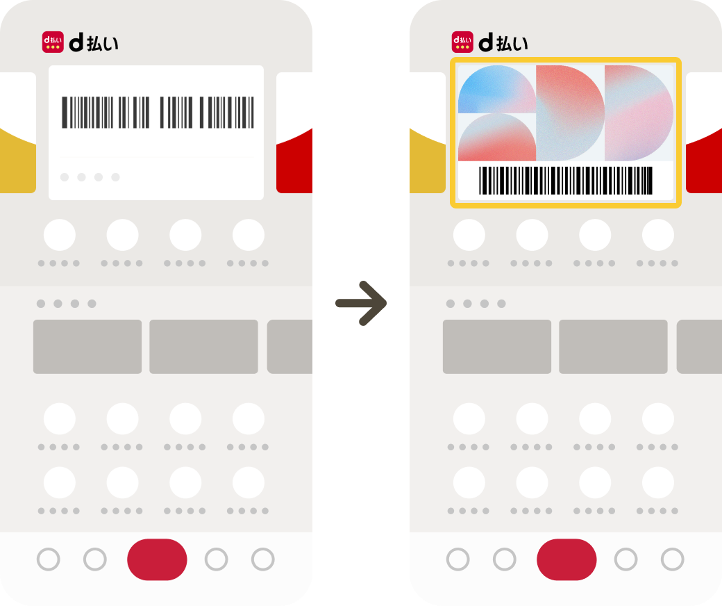 d払いアプリホーム画面の支払いバーコードエリアが変わります。