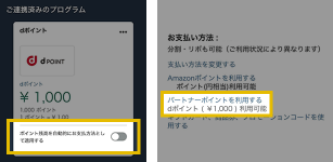 Amazon上での「dポイント」利用をチェックしていない場合にも、d払いのポイント事前設定にて、「dポイントを利用する」を選択している場合には、d払いでの決済時にdポイントが利用されます。