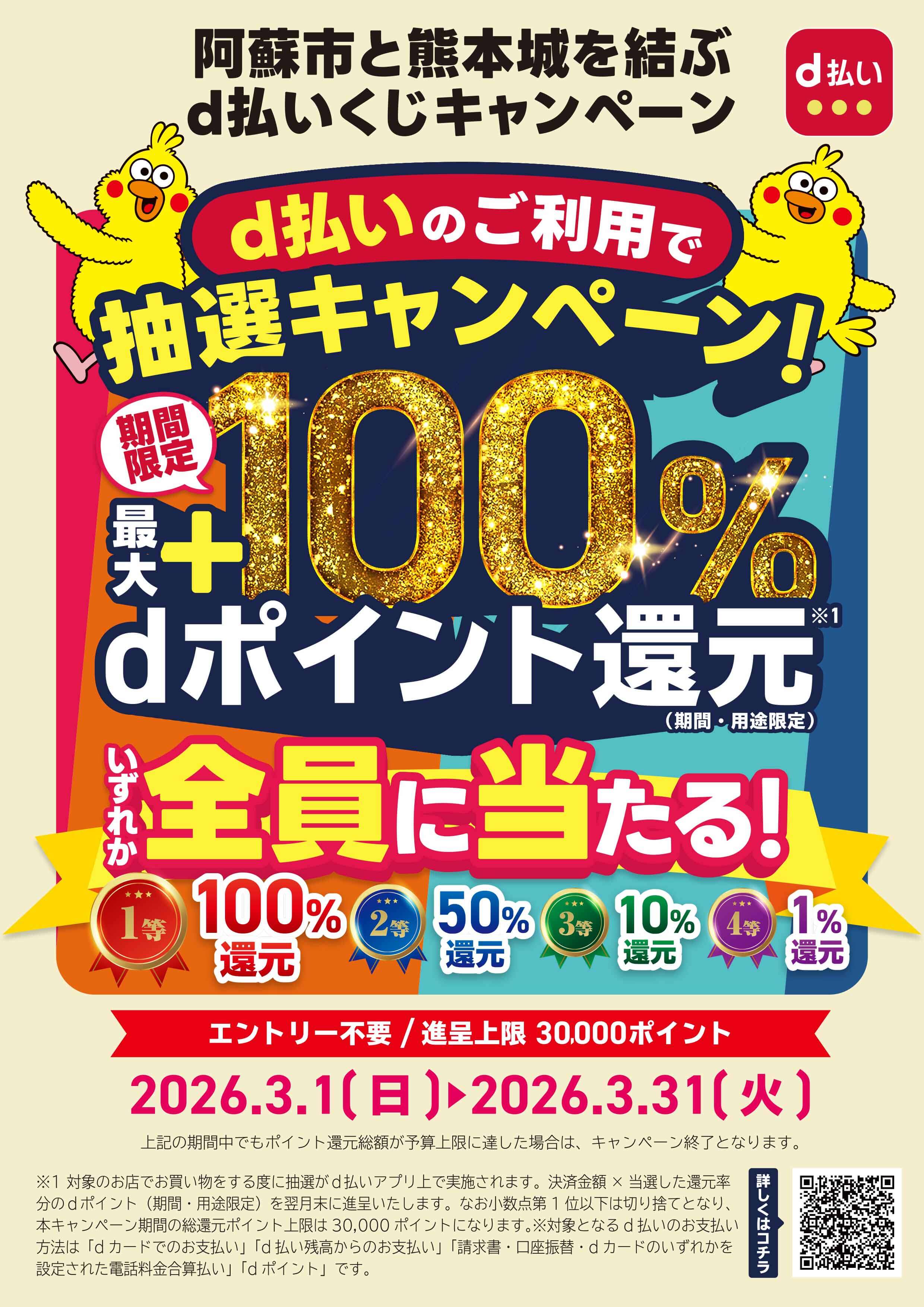 「阿蘇市と熊本城を結ぶ!! d払いでお得にお買物を楽しもうキャンペーン」