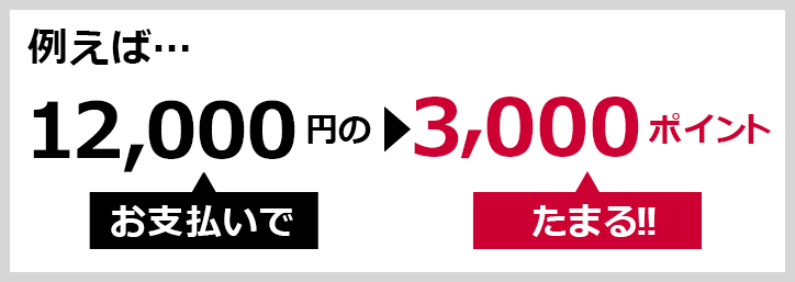 ・付与率25%、お支払い1回当たり 3,000ポイント・キャンペーン期間中合計 10,000ポイント