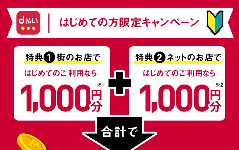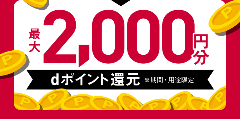 はじめてボーナス!街・ネットのd払いでdポイント最大2,000円分還元キャンペーン