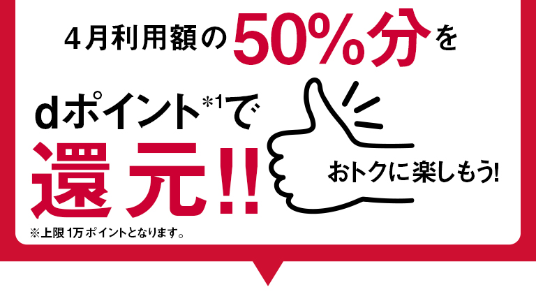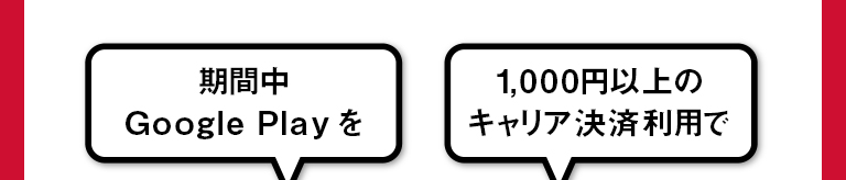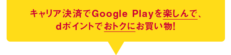 対象期間中に Google Play の「NTT DOCOMO利用料金と一緒に支払い」設定にて、1,000円以上ご利用頂くとご利用額の50%分のdポイント(期間・用途限定)を進呈いたします。(上限1万ポイントとなります。)