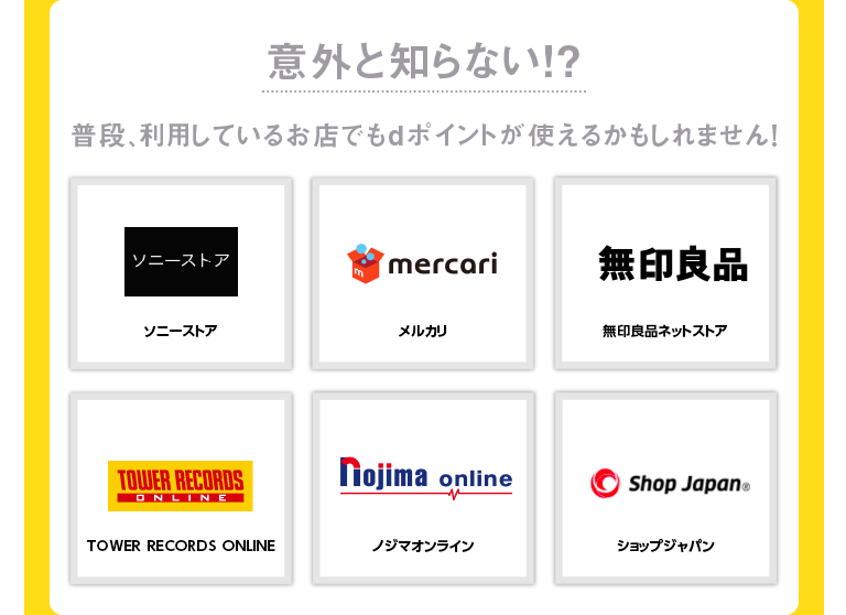 - dポイント(期間・用途限定)は、ドコモコンテンツ(dマーケット等)、ドコモ商品(携帯電話、付属品等)、dポイント加盟店で利用できます。(dマーケットは一部ストア除く)