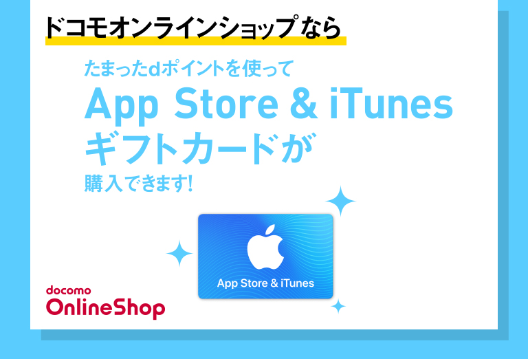 ※ドコモオンラインショップ、ドコモショップでのApp Store&iTunesギフトカード購入は対象外となります。