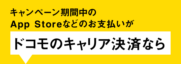 ※「初めてご利用の方」とは、キャンペーン開始以前に、App Storeなどのお支払いで、ドコモのキャリア決済を利用したことのない方となります。