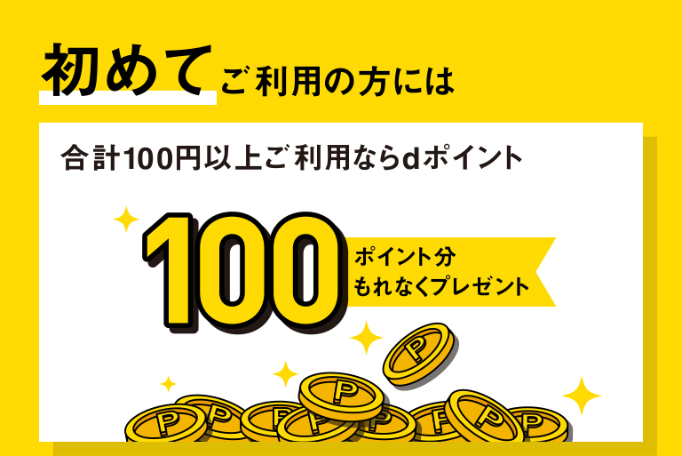 特典1:初めてのご利用で合計100円以上お買い上げのお客様に100ポイント分のdポイントをプレゼント。