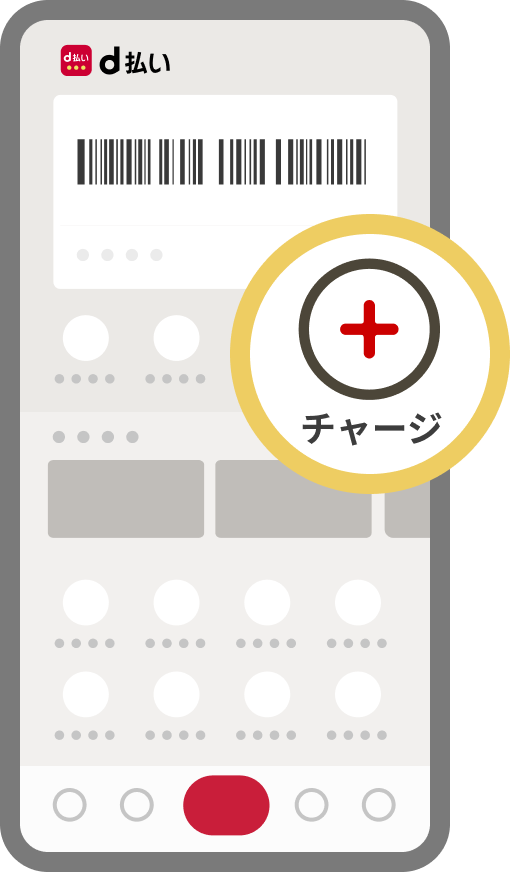 d払いアプリを起動し、ホーム画面の「チャージ」をタップします。