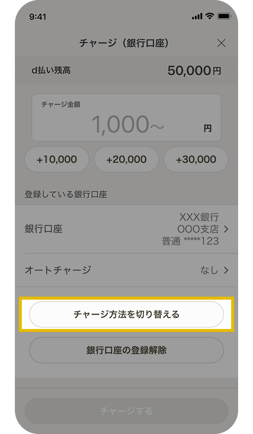 銀行口座登録済みの方は、「チャージ(銀行口座)」画面にて「オートチャージ」を選択してください。