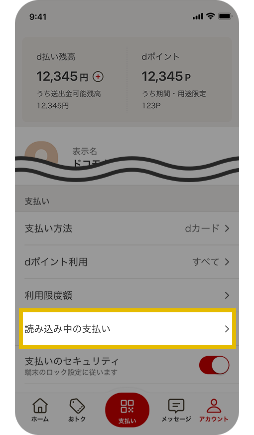 - ※「OFF」の場合は、タップして「ON」に変わると、dポイントでの支払いができるようになります。